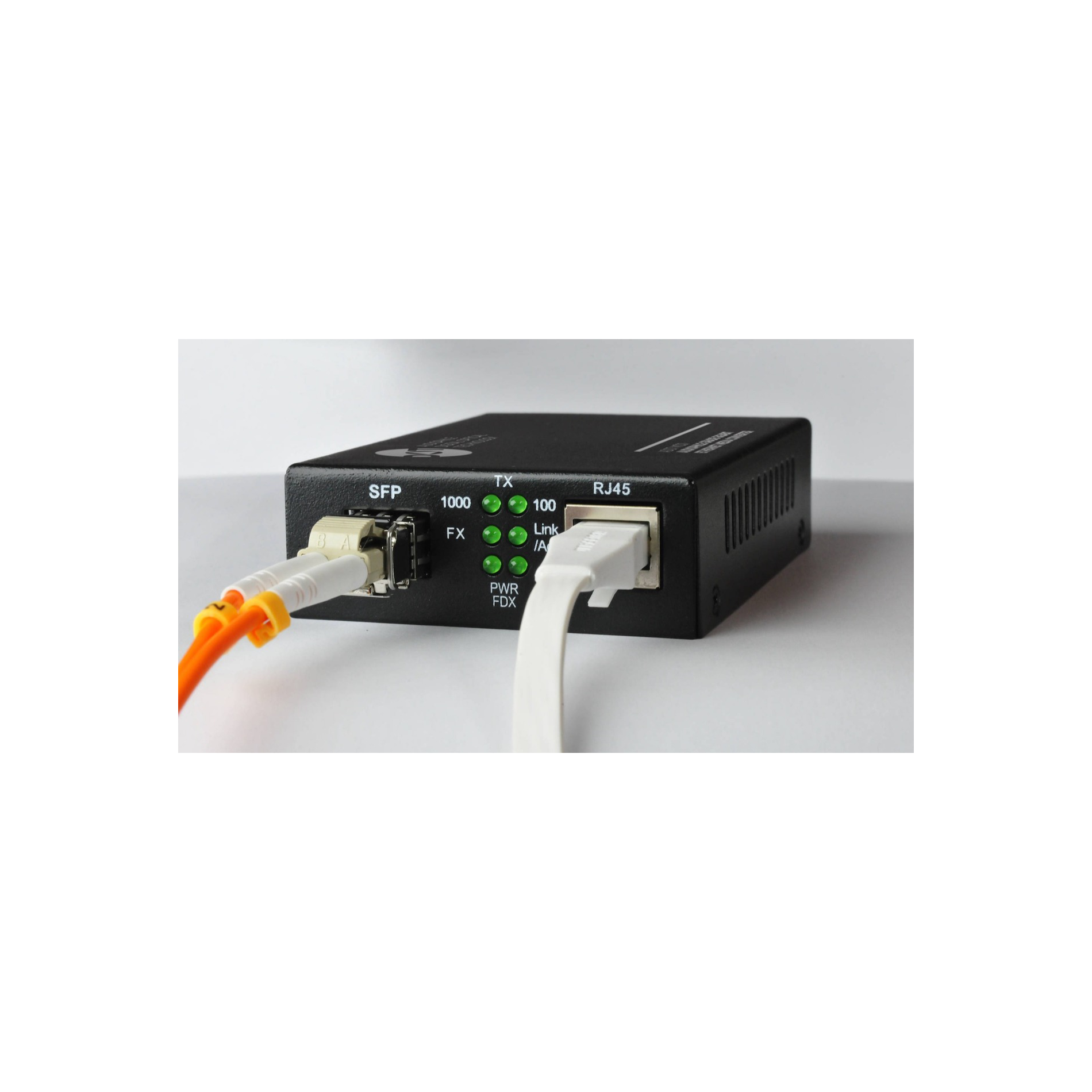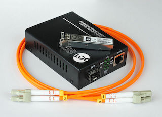 An MC01 supplied with 2x SFP and 1.5m Fibre but to use with other linear 5V Power Supply. Also available with SMK.