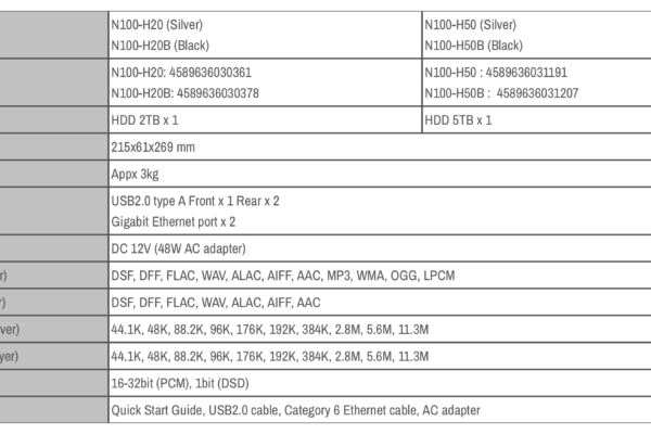 Benefitting from a 2 TB HDD (5 TB HDD version is “End Of Life” – 1 silver left in stock) , easily expandable with the Melco E100 expansion drive or a standard USB-connected HDD, the N100 is the perfect introduction to Melco ownership. Despite its low price, the N100 features core Melco innovations, such as audio-specific components, twin ethernet ports (incl. a dedicated player port) and front panel, app or remote control.